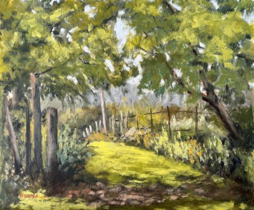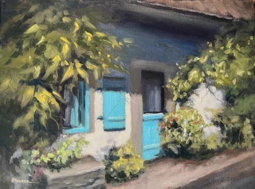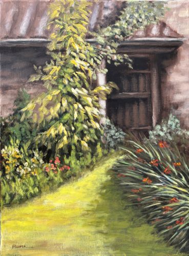 Oil and gold leaf on canvas board, 13 x 18 cms.