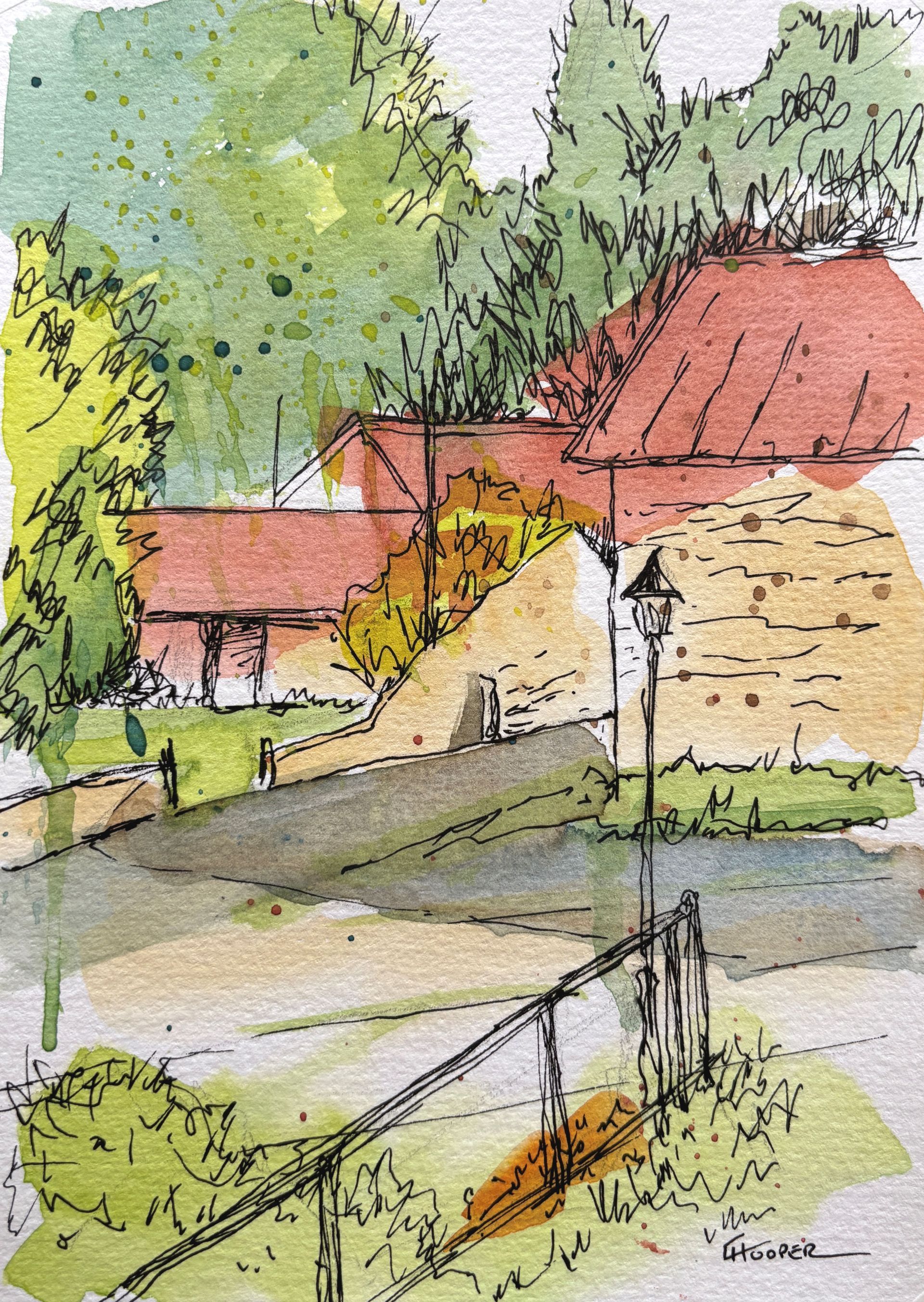 Watercolour and ink on watercolour paper, 5 x 7 ins.